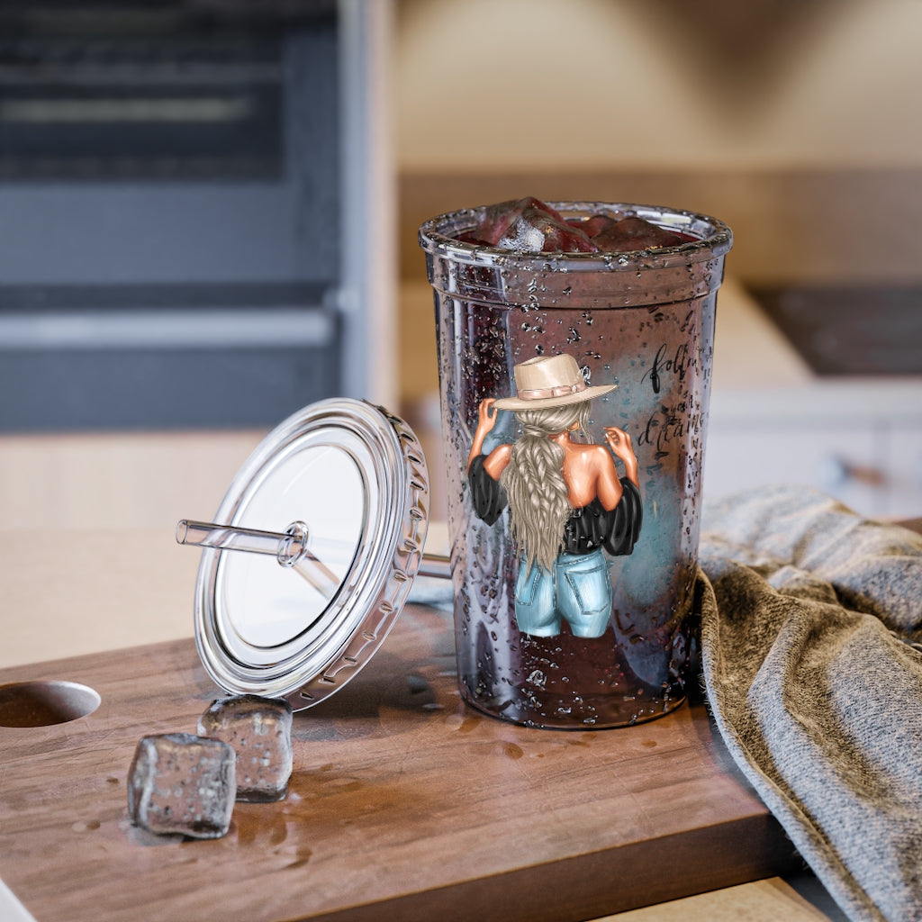 Made for grabbing beverages on the go, this double-wall insulated acrylic cup will keep cold drinks cold for 24 hours and hot for 12 hours. Decorate them to the rim with picture-perfect quality artworks or photographs. The cup, the plastic lid, and the straw are all BPA-free.